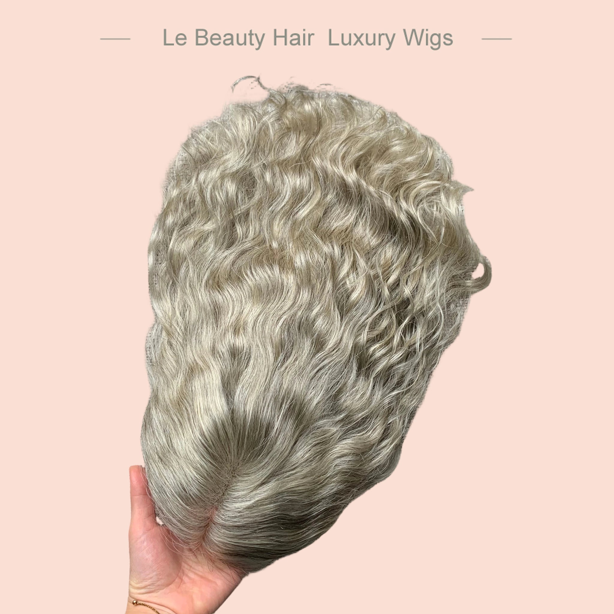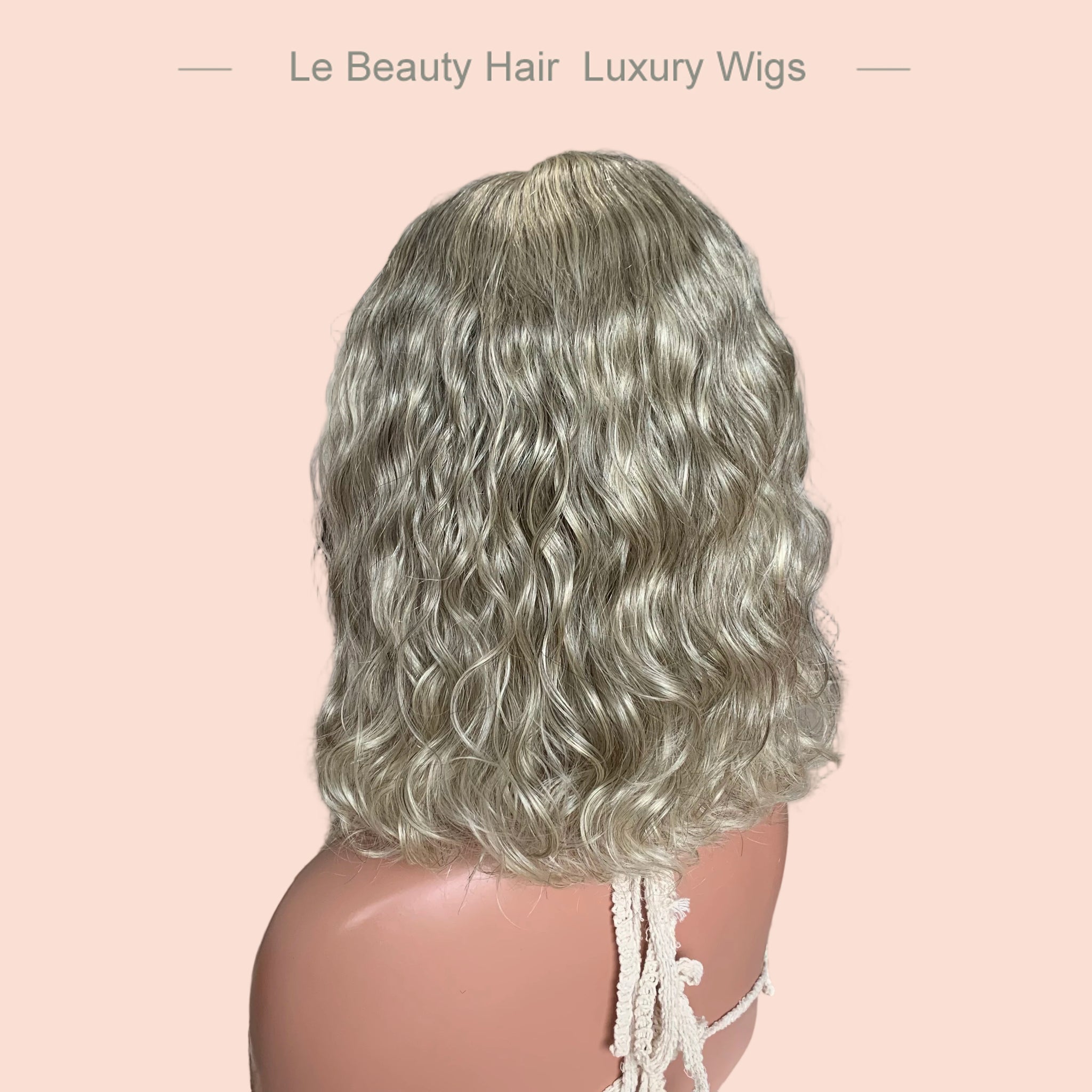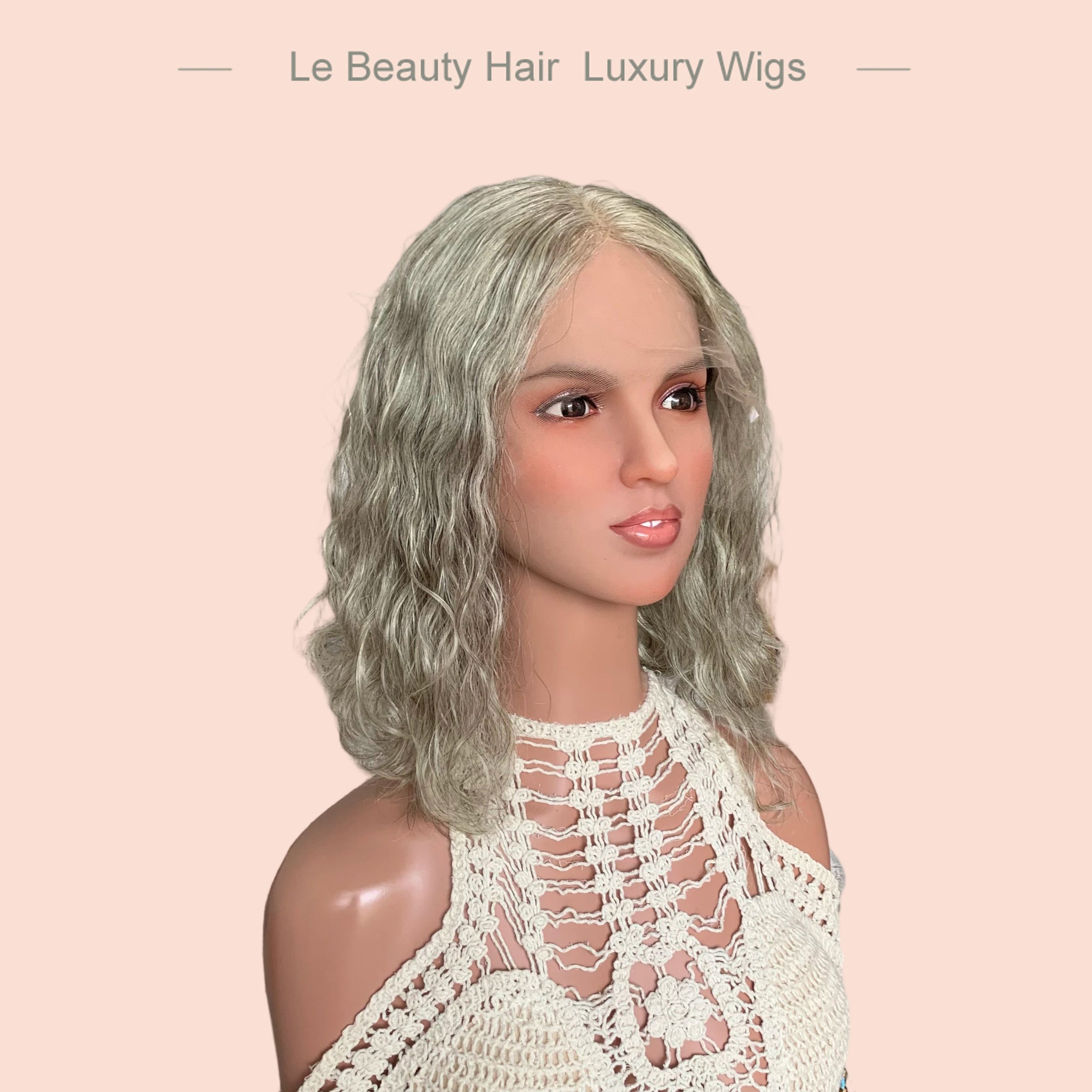 14 inchWhite color hair with little black color hair highlightsEuropean hairWave Swiss lace top wig